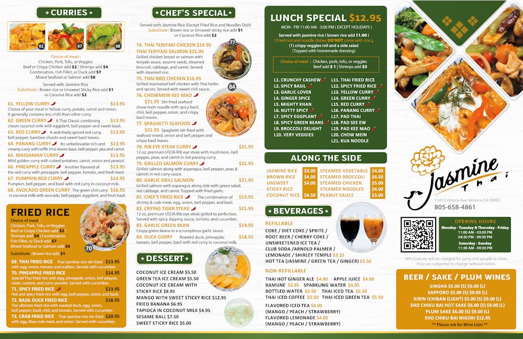 Jasmine Thai Restaurant Ventura Official Site Menu